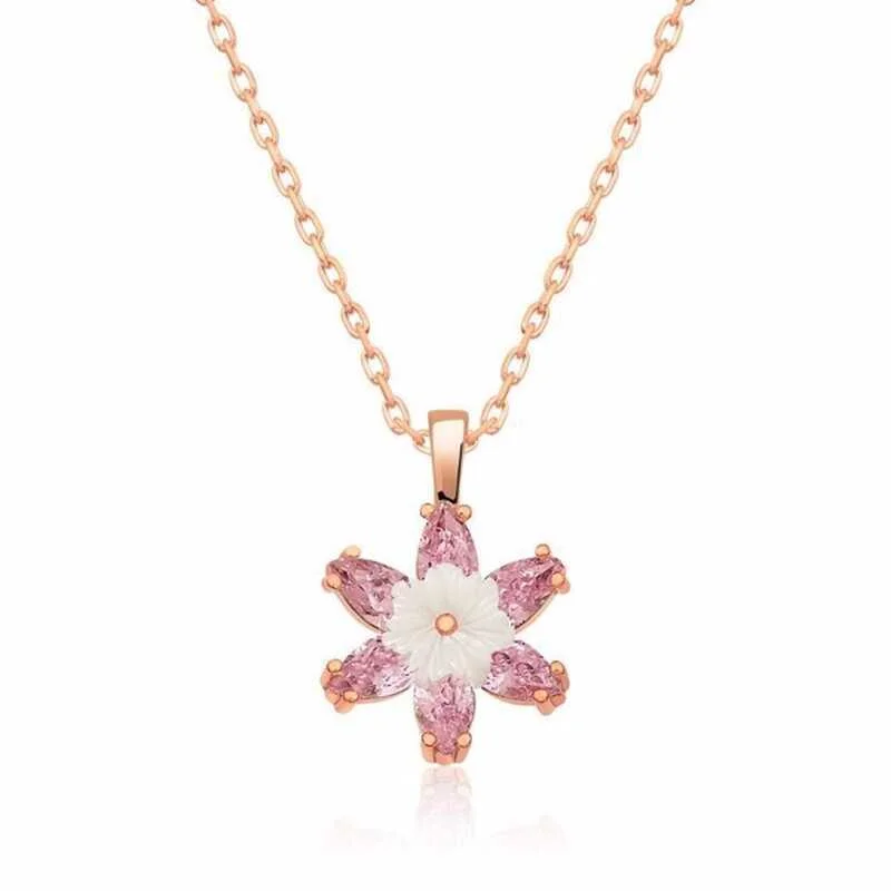 925k Sterling Silver Elegant Rose Gold Plated Pink Lotus Flower Women’s Necklace